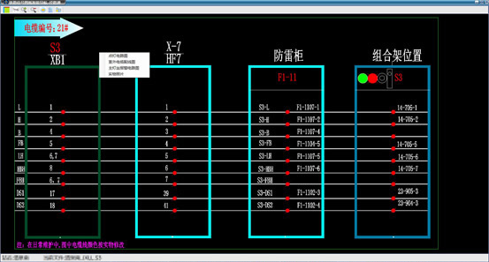 該系統(tǒng)可設(shè)計(jì)、繪制出規(guī)范的電纜徑路圖,并對(duì)完成的電纜徑路圖進(jìn)行自動(dòng)識(shí)別,如各條主電纜的徑路結(jié)構(gòu)、箱盒類型、連接設(shè)備的